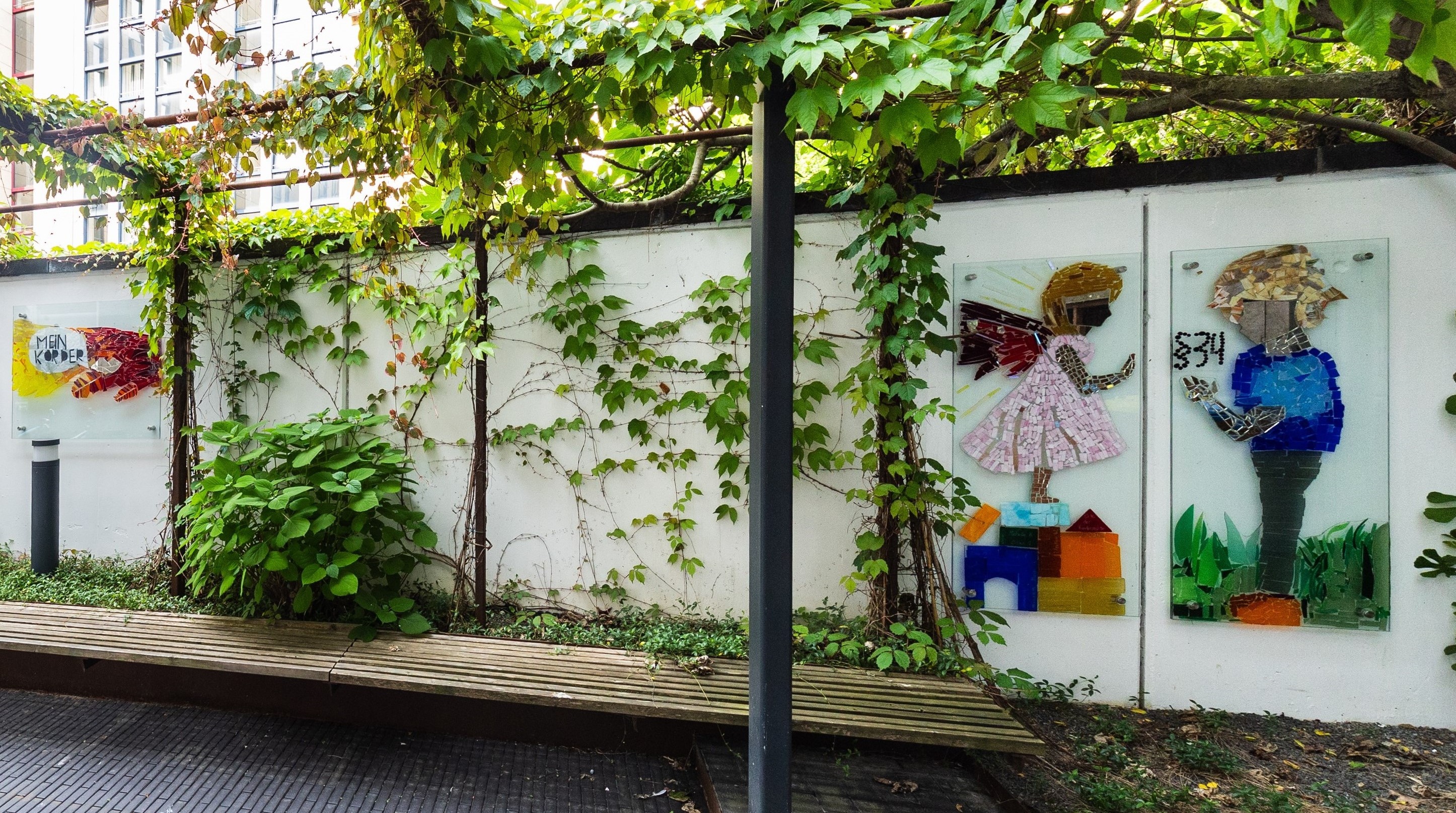 Im Jahr 2022 wurden in Deutschland rund 15.500 Fälle von sexuellem Kindesmissbrauch angezeigt – das tatsächliche Ausmaß ist jedoch deutlich höher. Die WHO schätzt, dass bis zu eine Million Kinder und Jugendliche in Deutschland sexualisierte Gewalt erlebt haben. Viele Fälle bleiben unentdeckt. Vor diesem Hintergrund befasste sich der „Ort der Kinderrechte“ 2024 mit Artikel 34 der UN-Kinderrechtskonvention, der den Schutz vor sexuellem Missbrauch thematisiert. Das Projekt fand an vier Tagen im Juli statt und entstand in Kooperation mit der Hildegard-von-Bingen-Schule in Koblenz, die angehende Erzieher*innen und Sozialassistent*innen ausbildet. Träger*innen waren die Jugendkunstwerkstatt Koblenz e.V. und das Kinder- und Jugendbüro Koblenz in Kooperation mit der Stadt Koblenz und der Schule. Im Unterricht hatten sich die Schüler*innen einer Unterstufenklasse bereits mit dem Thema auseinandergesetzt. Gemeinsam mit dem Glaskünstler Christian Schultz entwickelten sie ein Kunstwerk aus Glas – ein bewusst gewähltes Material, das die Sensibilität des Themas symbolisiert. Das Ergebnis wurde in der Woche der Kinderrechte im September 2024 feierlich im Eingangsbereich der Schule enthüllt. Eine begleitende Infotafel erklärt das Kinderrecht und das Anliegen des Kunstwerks.