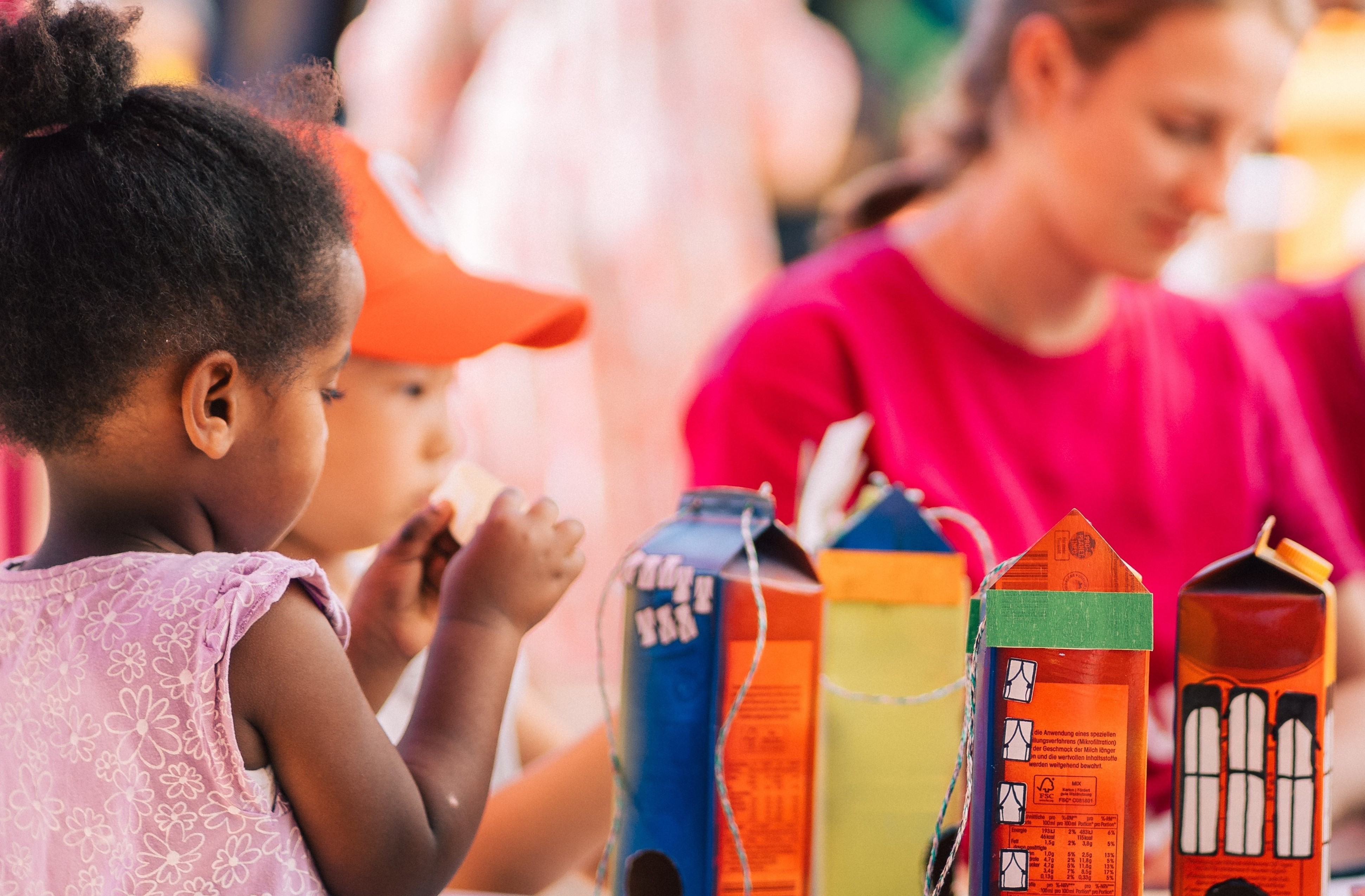 Seit 2022 erkundet die Jugendkunstschule Bergkamen in Zusammenarbeit mit den Dortmunder Kultur pflanzen e.V. kulturpädagogische Strategien, um Kinder und Jugendliche im öffentlichen Raum für Kultur zu begeistern. Dafür konzipierten sie den KunstLaster, ein umgebautes Lastenrad. Mit wenigen Handgriffen lässt es sich in eine mobile Jugendkunstschule verwandeln: Tische, Stühle und anregendes Material inklusive. An sechs bis acht Aktionstagen im Jahr gibt es in unterschiedlichen Settings offene Angebote zu erleben. Diese werden von Peerteamer*innen zwischen 15 und 25 Jahren entwickelt und durchgeführt. Außerdem radeln auch professionelle Dozent*innen auf dem KunstLaster dort hin, wo Kinder und Jugendliche sowieso schon sind: auf einer Wiese vorm Haus, in Hinterhöfen, auf Festen oder Spielplätzen. In Kooperationen mit anderen pädagogischen Einrichtungen werden Synergien entdeckt. Auf die Verknüpfung von Analogem und Digitalem wird viel Wert gelegt, unter anderem durch FabLab-Workshops, in denen kreative Möglichkeiten von „Plotting“ oder „Coding“ Thema sind. Weitere Schwerpunkte sind „Nachhaltigkeit und Upcycling“ sowie „Street-Art“ und „Sensory Play“. Der Aufforderungscharakter von Materialien und Aktionen spielt eine große Rolle und bildet den Rahmen für eigene Gestaltungsspielräume. Eingeführt, um niedrigschwellig Kontakt zu bisher unerreichten Kindern und Jugendlichen zu knüpfen, hat der „KunstLaster“ längst ein attraktives Eigenleben entwickelt.