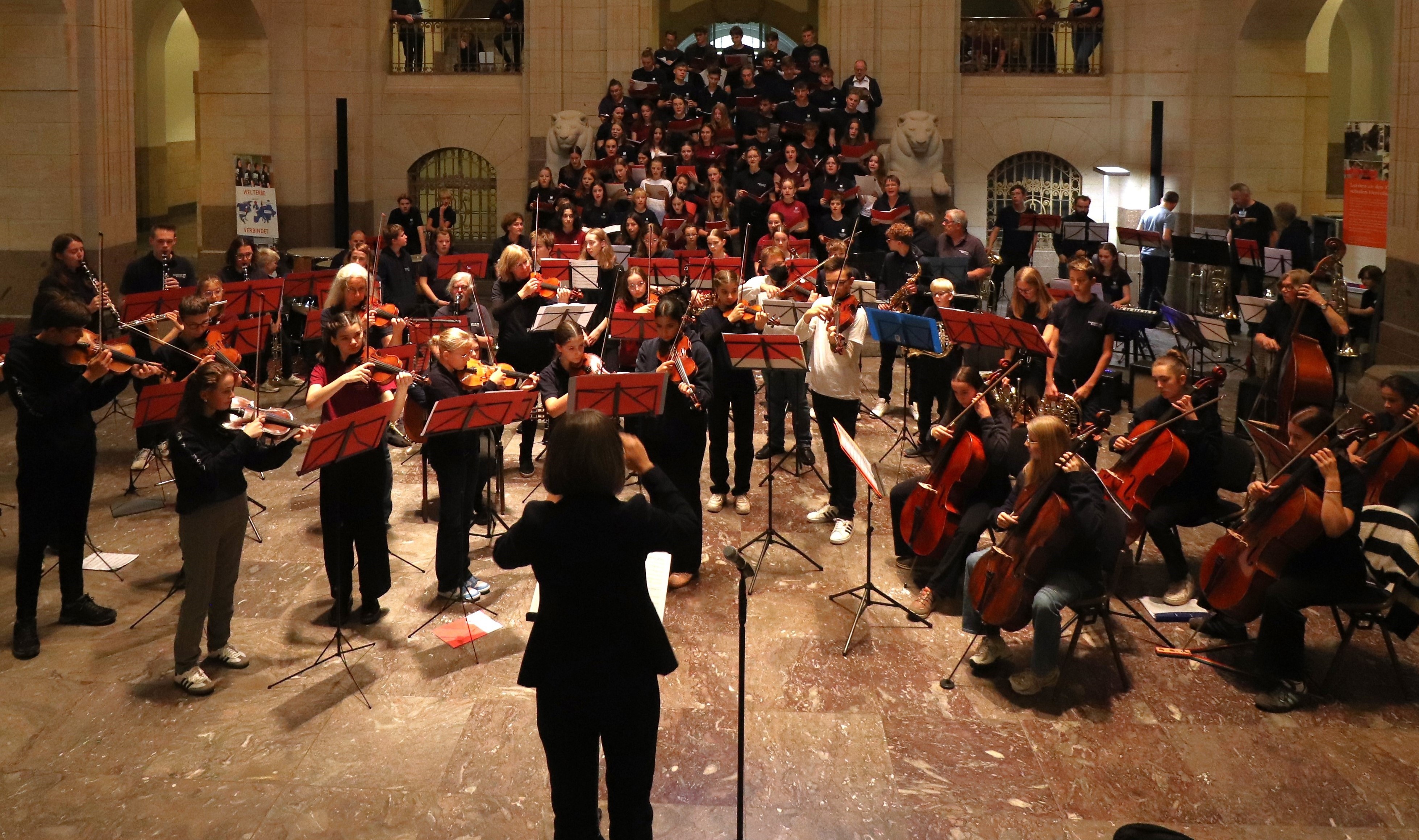 Ein vergleichbar großes, schulübergreifendes Vorhaben hat es in 300 Jahren Bildungsgeschichte der Schulen der Herrnhuter Brüdergemeine noch nicht gegeben: Zirka 140 Jugendliche und Erwachsene aus den Zinzendorf-Schulen Königsfeld besuchten die 700 Kilometer entfernte Herrnhuter Zinzendorfschule, um eine Woche lang gemeinsam zu musizieren. Vier Tage probten die Schüler*innen, die einander nicht kannten, gemeinsam und waren in Gastfamilien untergebracht. Für alle waren diese Erlebnisse neu und besonders – eine andere Umgebung, neue Leute, andere Abläufe und all dies, um zusammen alte Musik einzustudieren und zu präsentieren. Gearbeitet wurde zunächst in kleinen Gruppen, anschließend fanden sich die verschiedenen Ensembles mit dem Chor zu einem Orchester zusammen. Die Ergebnisse wurden in drei Konzerten der Öffentlichkeit präsentiert. Für 2026 ist ein Gegenbesuch geplant.